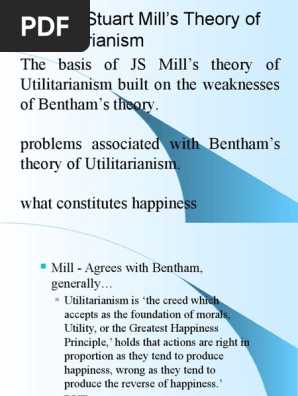 Reformulating the ethical theory first articulated by. Utilitarianism John Stuart Mill Utilitarianism by John Stuart Mill is an essay written to provide support for the value of utilitarianism as a moral theory and to re-spond to misconceptions. How might this Mills ideal become aproblem for potentially virtuous acts which dont immediately benefit other people.
